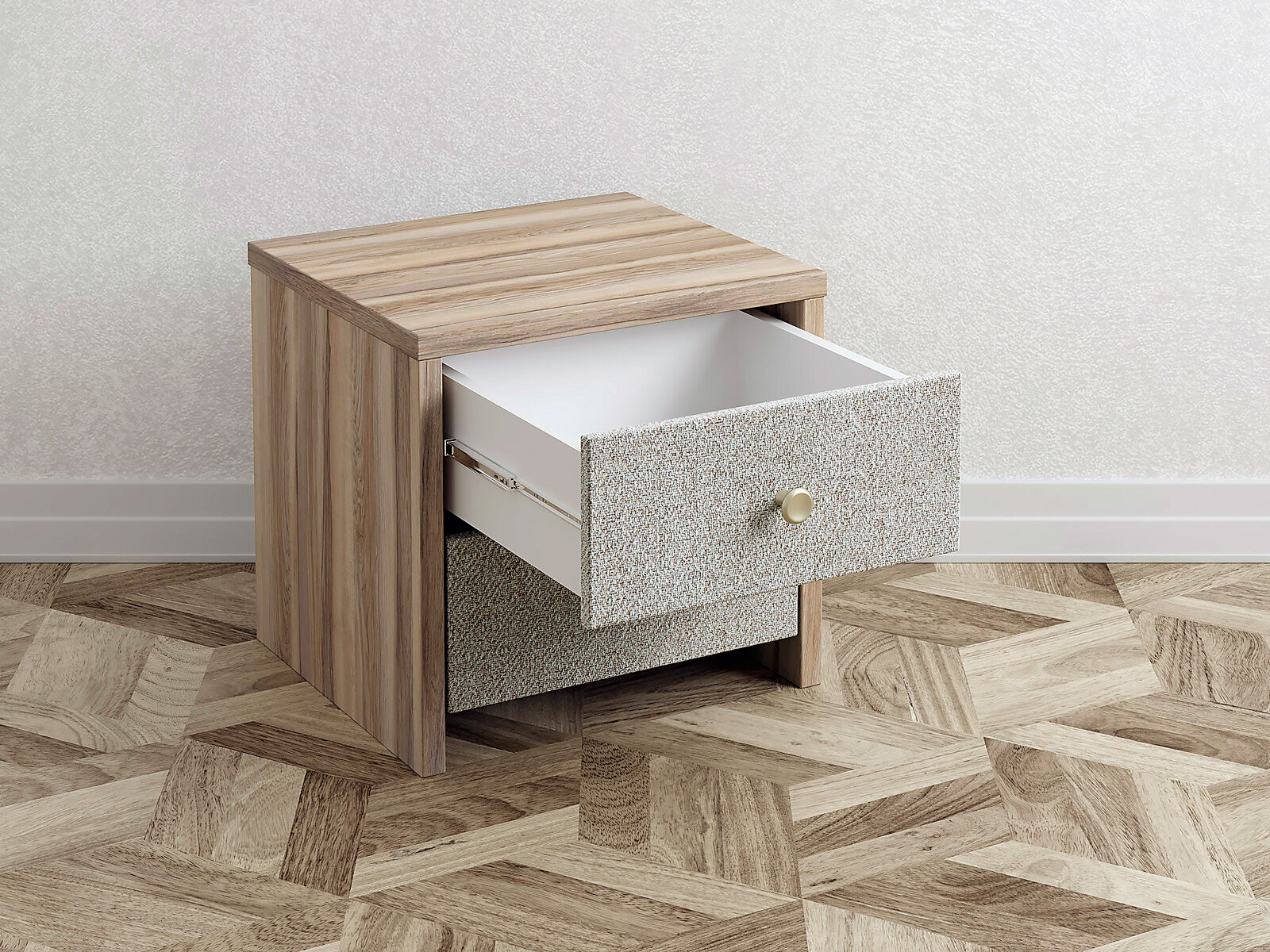 Прикроватная тумба с выдвижными ящикам сочетается с любыми моделями кроватей. Прямые углы, лаконичные металлические ручки, увеличенная толщина плиты ЛДСП 25 мм. Шариковые направляющие без доводчика. Фасады выдвижных ящиков выполняются в любой ткани на выбор. Стильная и практичная тумба прекрасно дополнит собой как кровать в полностью мягком исполнении, так и для комбинированных моделей из мягкого изголовья с ламинированными царгами.