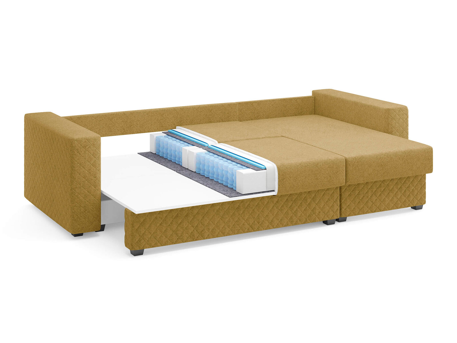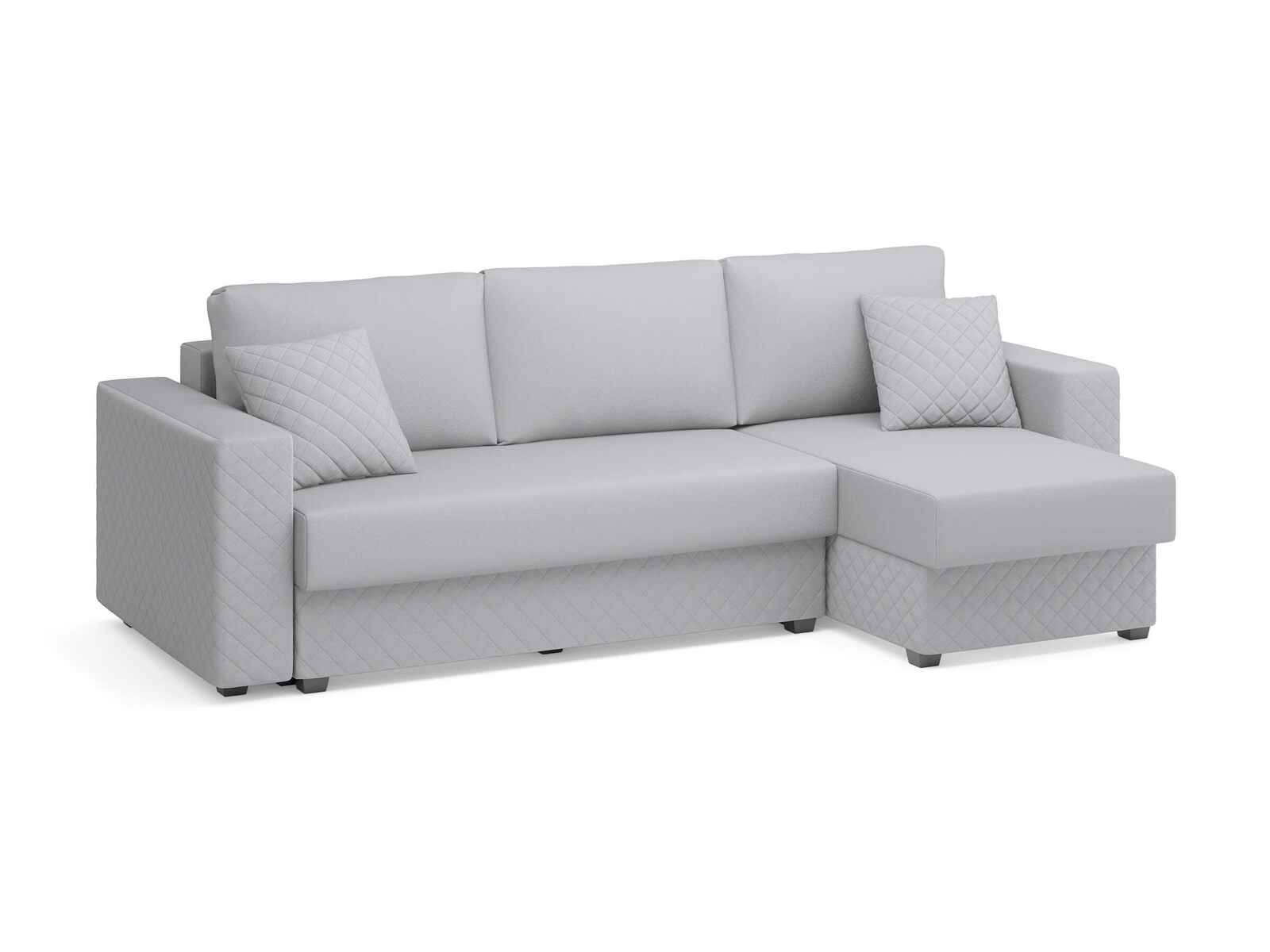 Диван оснащён современным механизмом трансформации пантограф, который обеспечивает лёгкость и удобство в использовании. В его основе лежит ортопедический матрас с независимым пружинным блоком, что гарантирует комфортный отдых и здоровый сон. Удобная глубина и высота сидения способствуют повседневному комфорту, позволяя расслабиться после долгого дня. Декоративная стёжка на подлокотниках и цоколе подчёркивает строгие, геометрические формы дивана, придавая ему стильный и современный вид. Задняя спинка дивана защищает от прикосновения со стеной во время сна, а также предотвращает возможные повреждения и загрязнения стен. В угловой секции (оттоманка) предусмотрено удобное место для хранения, что позволяет рационально использовать пространство. В комплект дивана входят две стёганные декоративные подушки, которые дополняют его внешний вид и обеспечивают комфорт. При сборке вы можете самостоятельно выбрать, с какой стороны будет расположен угол — справа или слева.