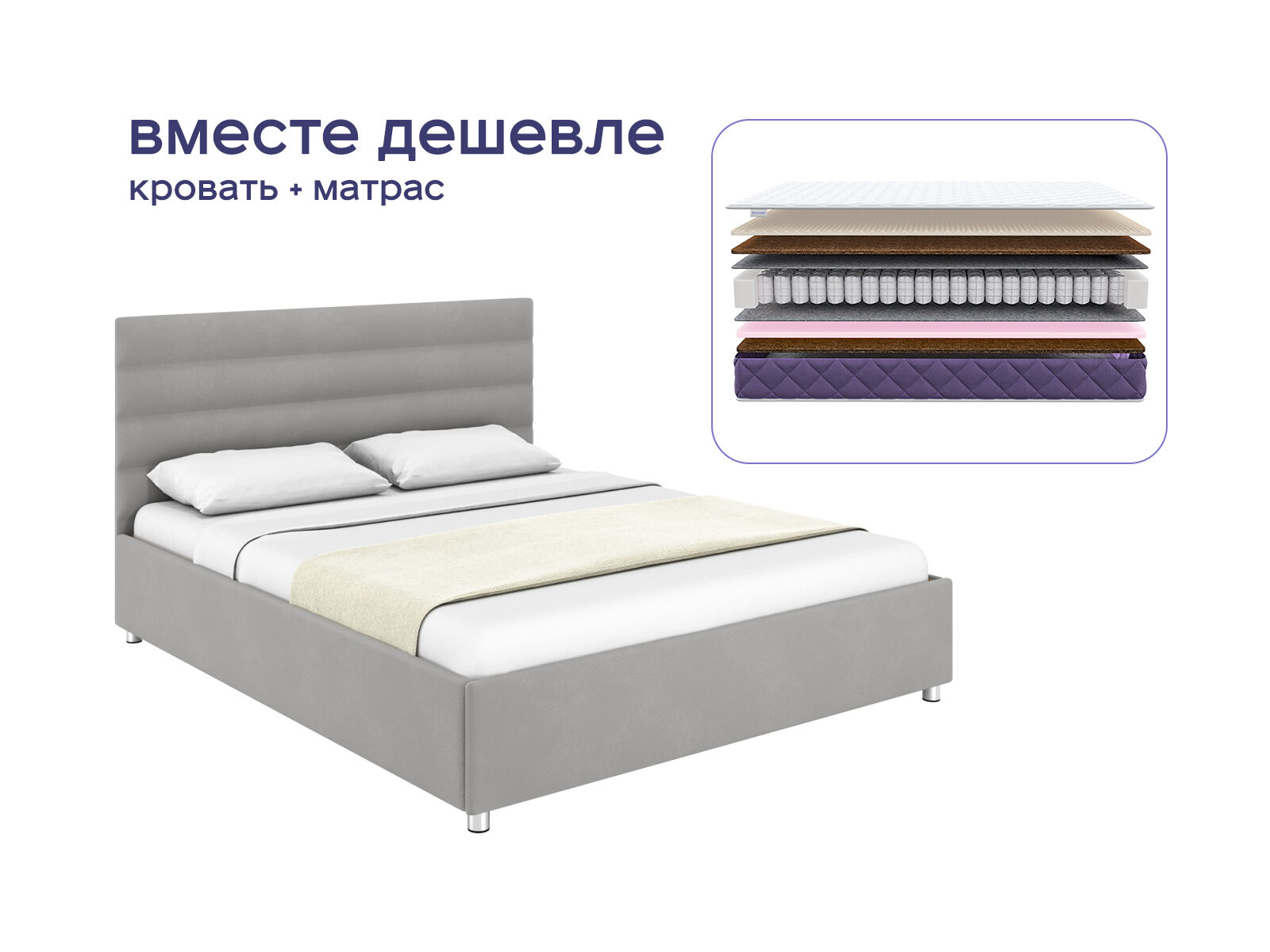 Комплект Левита + Базилик Микс 20 Медиум Массаж — это гармония элегантности и комфорта для вашего отдыха. Стильная кровать украсит любую спальню и матрас, точечно подстраивающийся под тело, дополнен массажными зонами для расслабления мышц — как в спа-салоне. При покупке комплекта вы экономите до 36% от стоимости. Идеально для тех, кто хочет совместить современный дизайн с ортопедическим эффектом, не жертвуя практичностью.