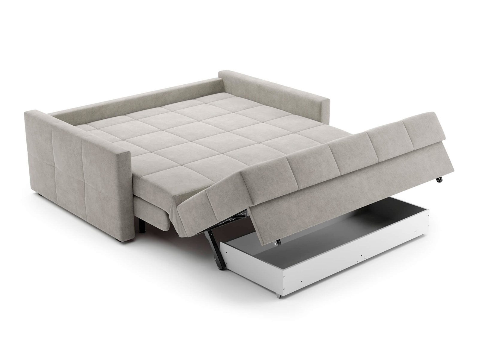 Диван-кровать Rest для сна в современном стиле, с механизмом трансформации аккордеон и коробом для хранения. Металлический каркас с деревянными ламелями обеспечивает ровную поверхность, как на кровати. Матрас анатомический с независимым пружинным блоком. Благодаря чехлу с объемной стежкой в форме квадратов, диван органично впишется в современные интерьеры и интерьеры в стиле минимализм. Лаконичные подлокотники и механизм разложения обеспечивают дивану минимальные габариты в ширину как в сложенном, так и разложенном виде. Диван Rest оборудован вместительным коробом для хранения постельного белья или аксессуаров для сна. Rest имеет 2 положения трансформации - диван с комфортной посадкой и кровать с полноценным анатомическим матрасом.