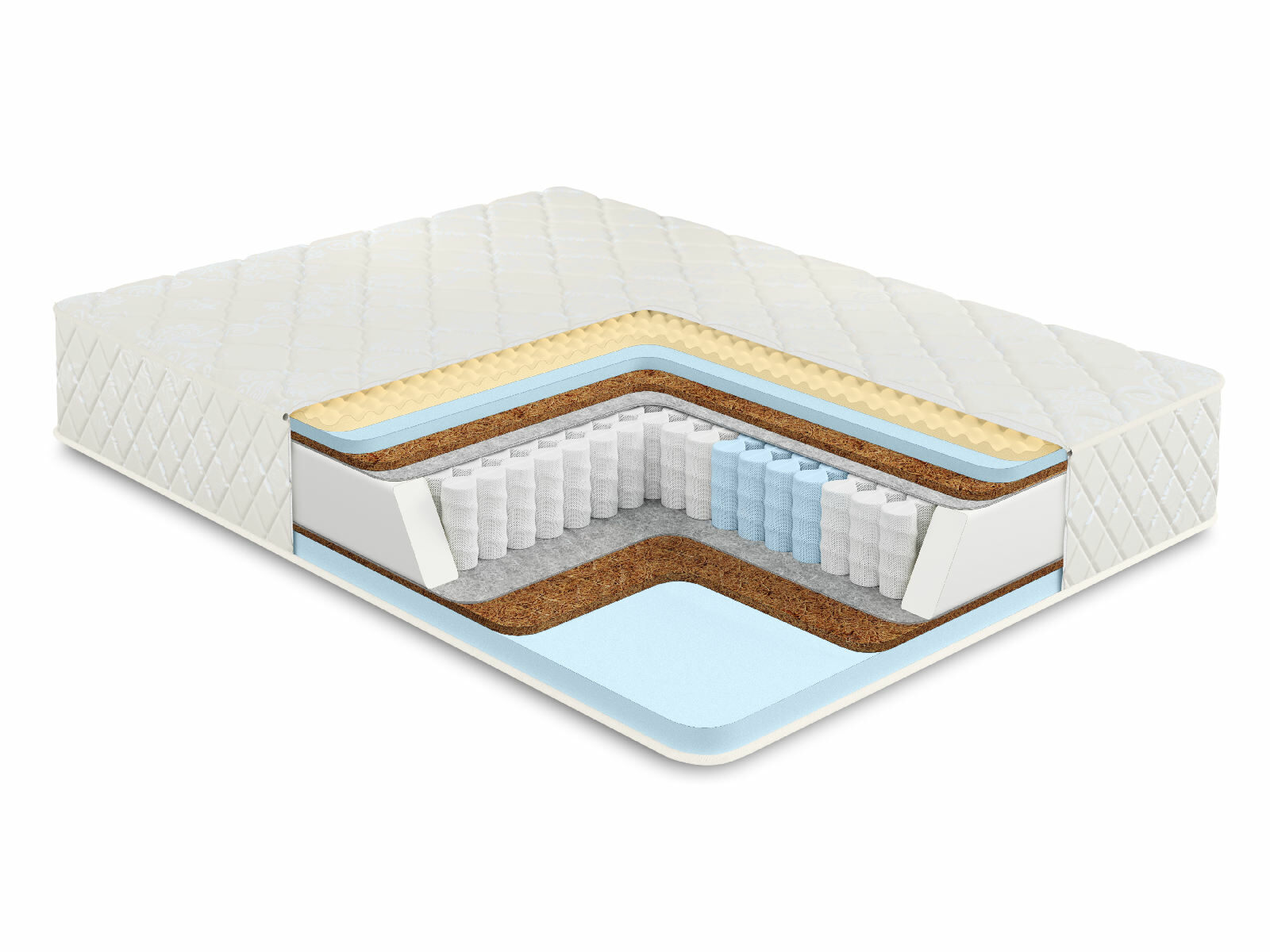 Пружинный матрас в основе которого многозональный независимый пружинный блок 512 пружин на спальное место обеспечивает ортопедическую поддержку и комфорт во время сна. Независимые пружины подстраиваются под формы человека, потому что каждая пружина находится в отдельном кармашке и обеспечивает равномерное распределение веса.