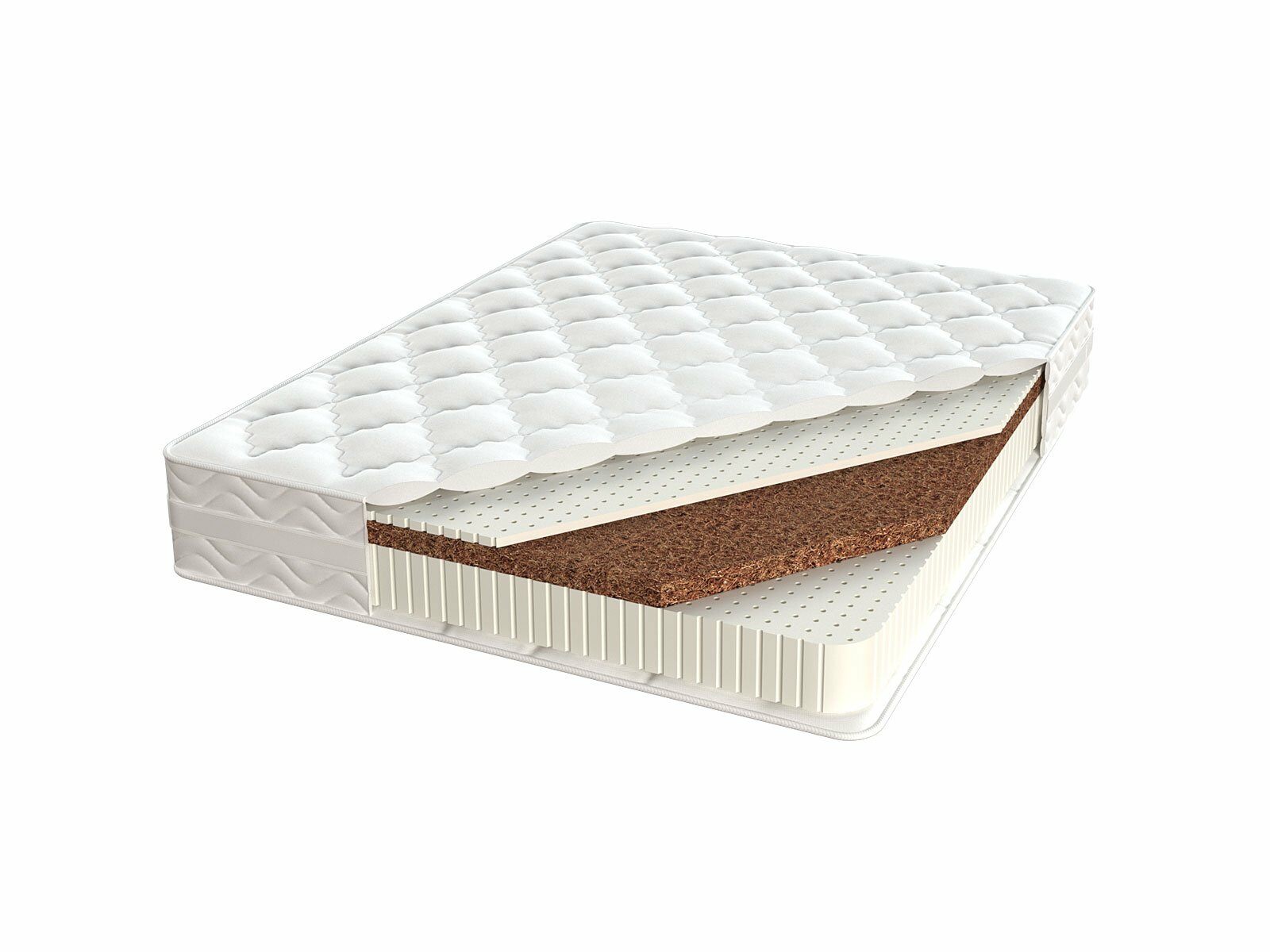 Перевернув изделие, вы получите кокосовое основание в сочетании с латексом толщиной 2 см. Прослойка, состоящая из кокосового наполнителя, не даст появиться нежелательному эффекту «гамака»: когда человек ложится на матрас отсутствует «провисание» изделия. Благодаря такой корректной работе матраса обеспечена наиболее оптимальная поддержка человеческого тела.