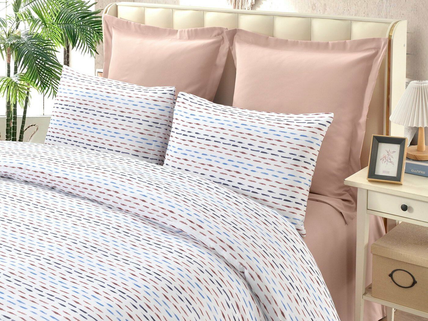 Пошив: пододеяльник на пуговицах, наволочки с клапаном.