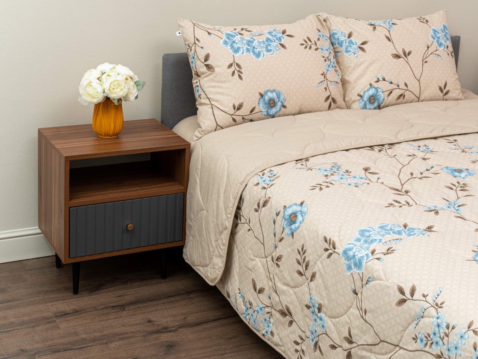 Комплект Мелвин легко стирается в обычной машине в бережном режиме и также легко гладится.