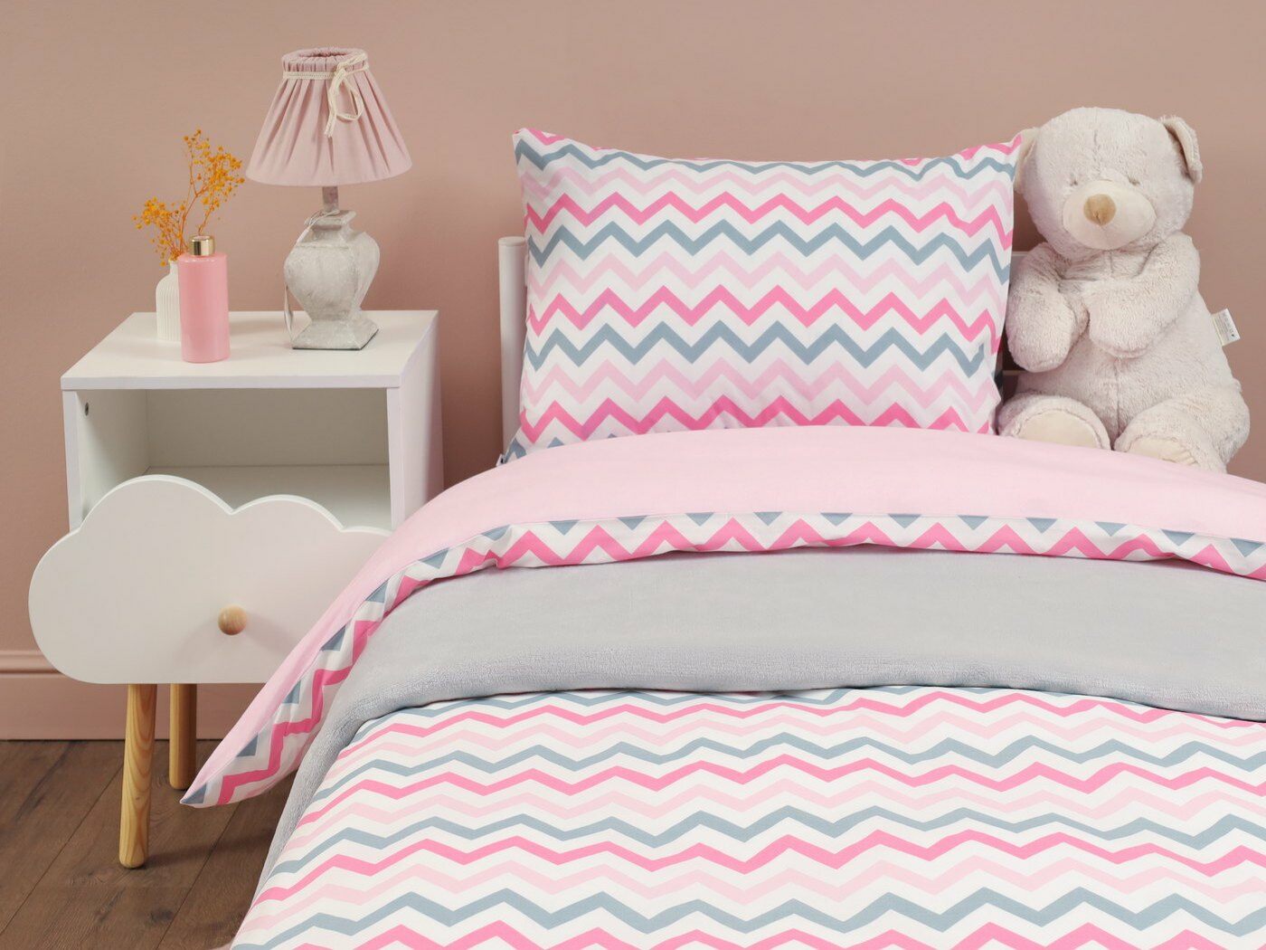 Пододеяльник –двусторонний: верх из ткани А (принтованная ткань), обратка из ткани В (однотонная рогожка), с потайной молнией.