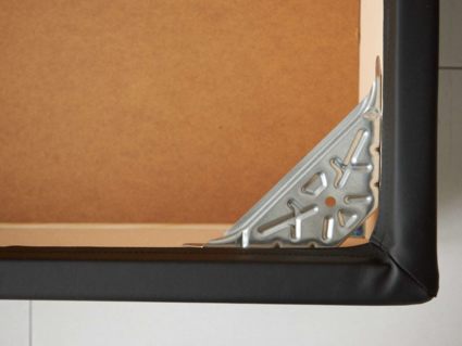 Коробочный каркас кровати собран из ДСП. Это прочный и надёжный материал, который широко используются в мебельной промышленности и органично переносит нагрузки.
