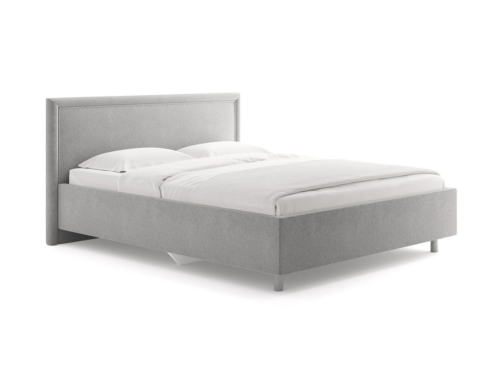 Элегантная интерьерная кровать с мягким изголовьем. Модель изготовлена из ДСП. Обратная сторона изголовья обита спандбондом, но её можно выполнить из основного обивочного материала. При необходимости кровать может быть укомплектована подъемным механизмом с бельевым ящиком или трансформируемым основанием Aquarius (размером 160-200).