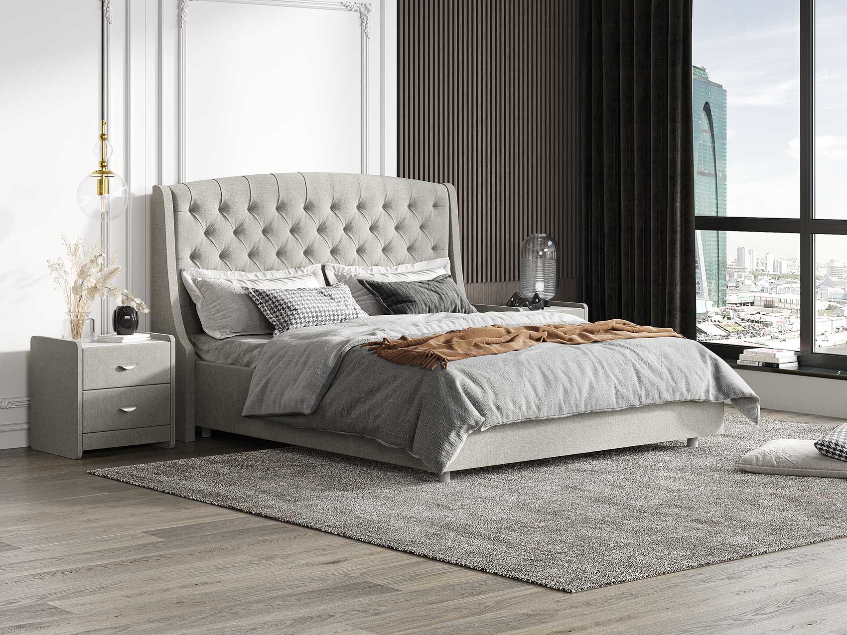 Стильная и комфортная интерьерная кровать. Кровать выглядит гармонично как в классическом интерьере, так и в современном, что открывает простор для смелых дизайнерских решений.