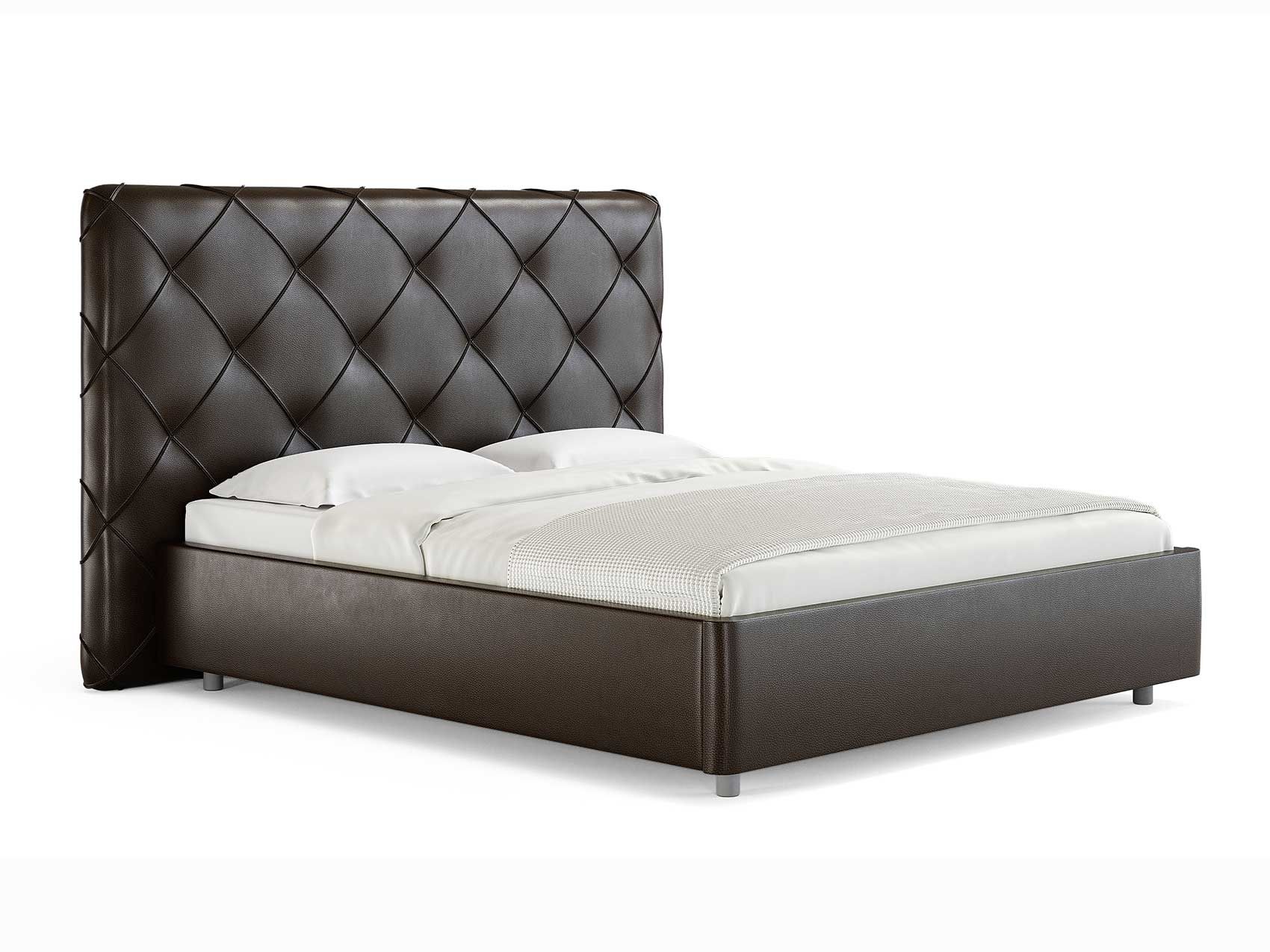 Современная интерьерная кровать. При необходимости, возможно установить подъемный механизм с бельевым ящиком. Ножная царга кровати скругленная по углам, что обеспечивает более элегантный внешний вид.