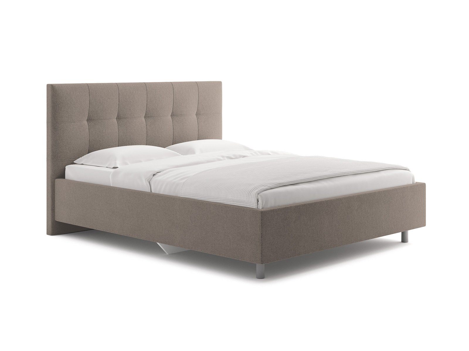 Лаконичная кровать с изголовьем, украшенным декоративной строчкой. Модель изготовлена из ДСП. Обратная сторона изголовья обита спандбондом, но её можно выполнить из основного обивочного материала.