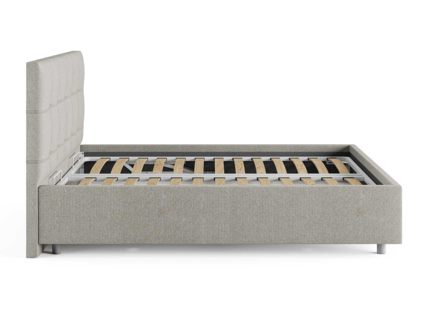 Кровать комплектуется металлическим основанием и подъемным механизмом со вместительным бельевым ящиком. Дно бельевого ящика легко сдвигается для обеспечения уборки под кроватью.