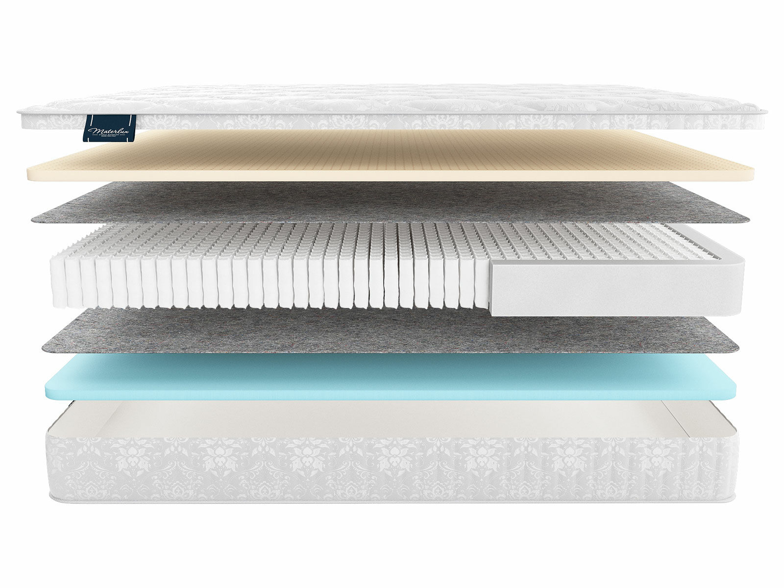 Матрас обеспечен уникальным семизональным латексным слоем. Латексная плита структурирована специальным образом и каждая из её частей отличается от соседней своей плотностью. Это сделано для более выраженной и качественной поддержки человека, ведь нагрузка от тела не поступает равномерно, а имеет свои особенности в той или иной части.
