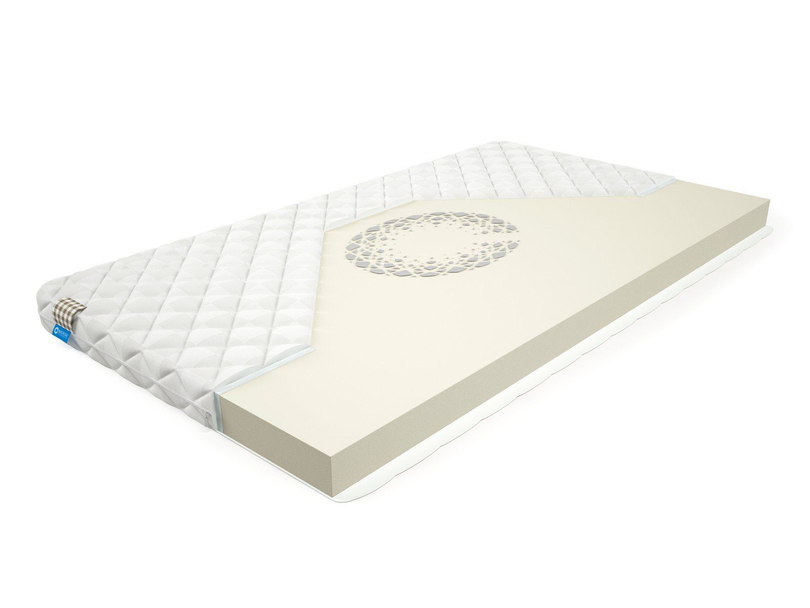 Трёхслойный съёмный чехол в белую клетку из комбинированной хлопковой ткани мягкий и износостойкий. Подходит для сухой или влажной уборки. Гипоаллергенный материал, благодаря хлопковой нити, делает поверхность воздухопроницаемой и гигроскопичной. Он хорошо вентилирует внутри матрасное пространство и восстанавливает температурный баланс.