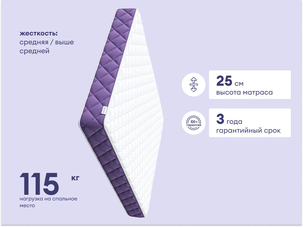 Матрас Базилик Фреш 25 Кокос — это идеальное сочетание комфорта и поддерживающих свойств, подходящее для любого спального места. С двумя уровнями жёсткости и гипоаллергенными материалами он обеспечивает здоровый и уютный отдых. С этим матрасом ваш сон станет комфортным и здоровым, как если бы вы отдыхали на юге Франции.