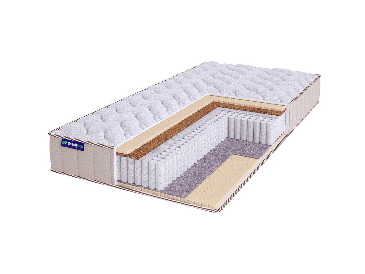 Матрас BeautyRoll Roll Spring Mix Latex 1 S1200 LUX изготовлен по уникальной бесклеевой технологии производства, что делает его гипоаллергенным и безопасным для здоровья. Модель получила среднюю и низкую жёсткости сторон.