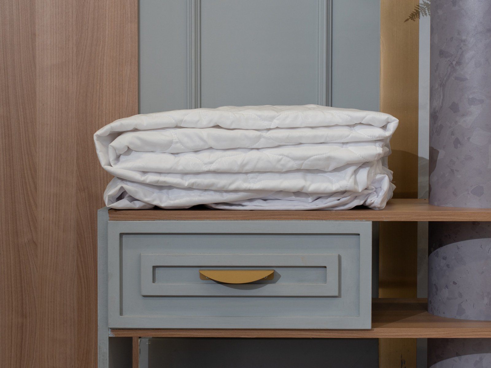 Чехол сшит из плотного дышащего поликоттона. Ткань содержит натуральный хлопок, поэтому поддерживает естественный воздухообмен и терморегуляцию. Сон на таком чехле будет комфортным даже в жаркое время года.