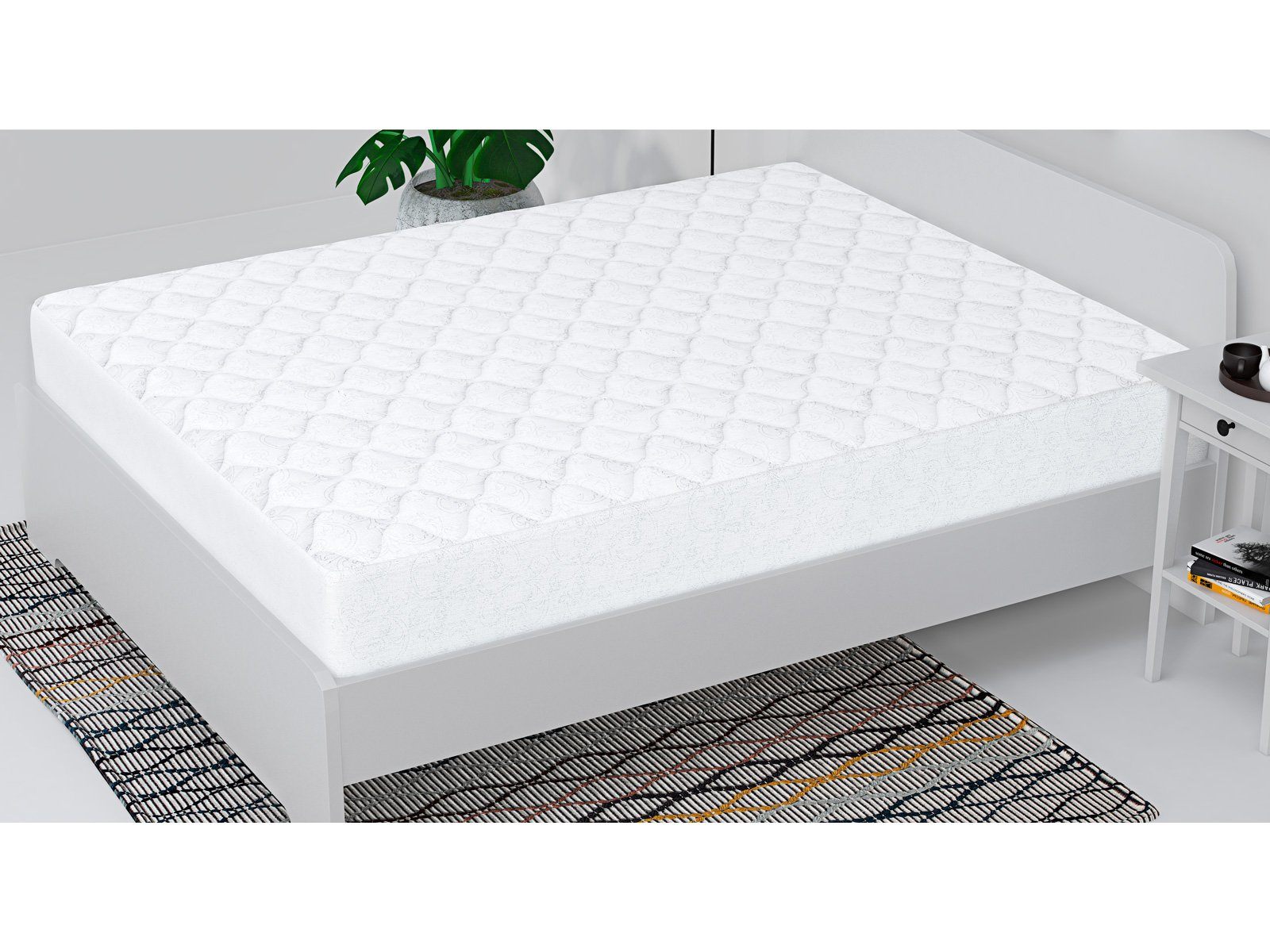 Спальная поверхность чехла получила фигурную стёжку и аккуратный кант, чехол также защищает и боковые части матраса. Наматрасник удобно фиксируется с помощью вшитой по периметру резинки. Изделие надевается на матрас по методу натяжной простыни.