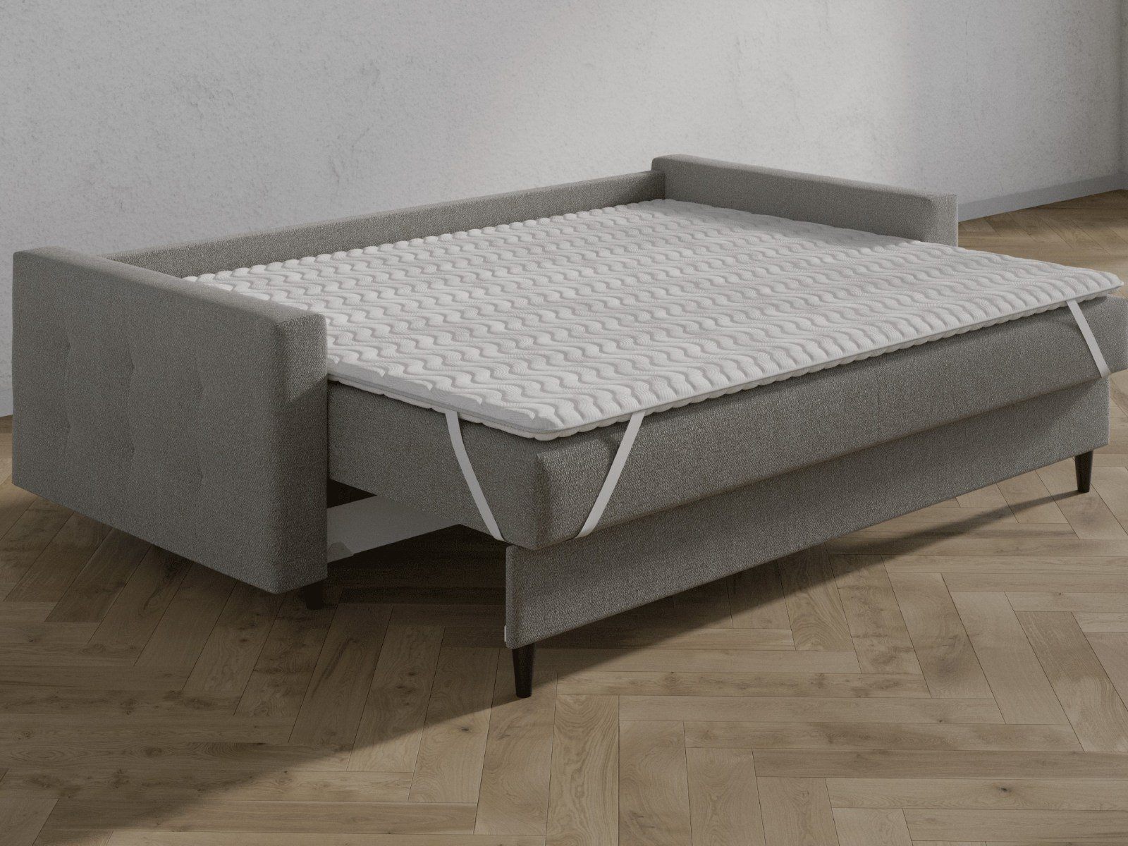 Топпер изготовлен на основе натуральных материалов. Эта модель сделает мягче жёсткие поверхности кроватей и диванов, скроет небольшие неровности, а также обеспечит комфортный отдых. Крепление осуществляется с помощью резинок по четырём углам.