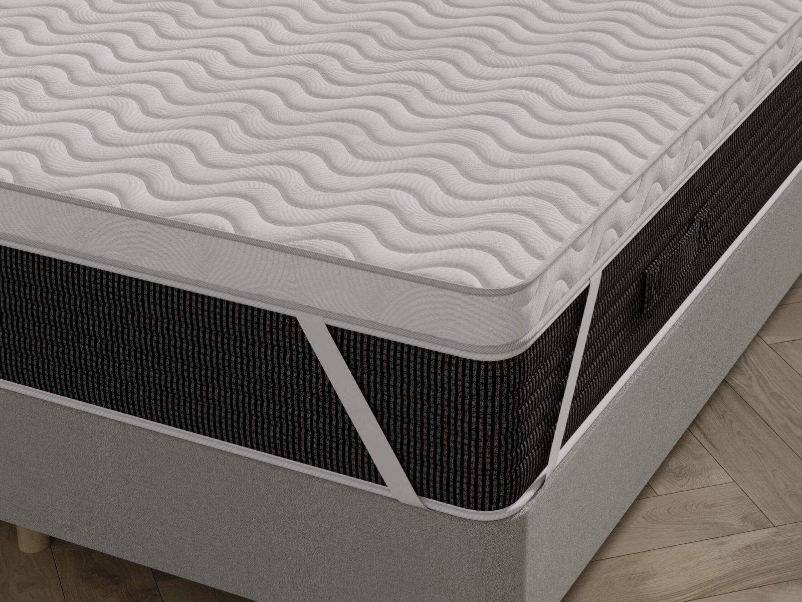 Топпер предназначенный для матрасов и диванов. Пена с эффектом памяти повторяет контуры тела и создаёт комфортную поверхность для отдыха, а высокоэластичная пена с обратной стороны обеспечивает упругую поддержку позвоночника. Подходит для аллергиков. Крепление осуществляется с помощью резинок по четырём углам.