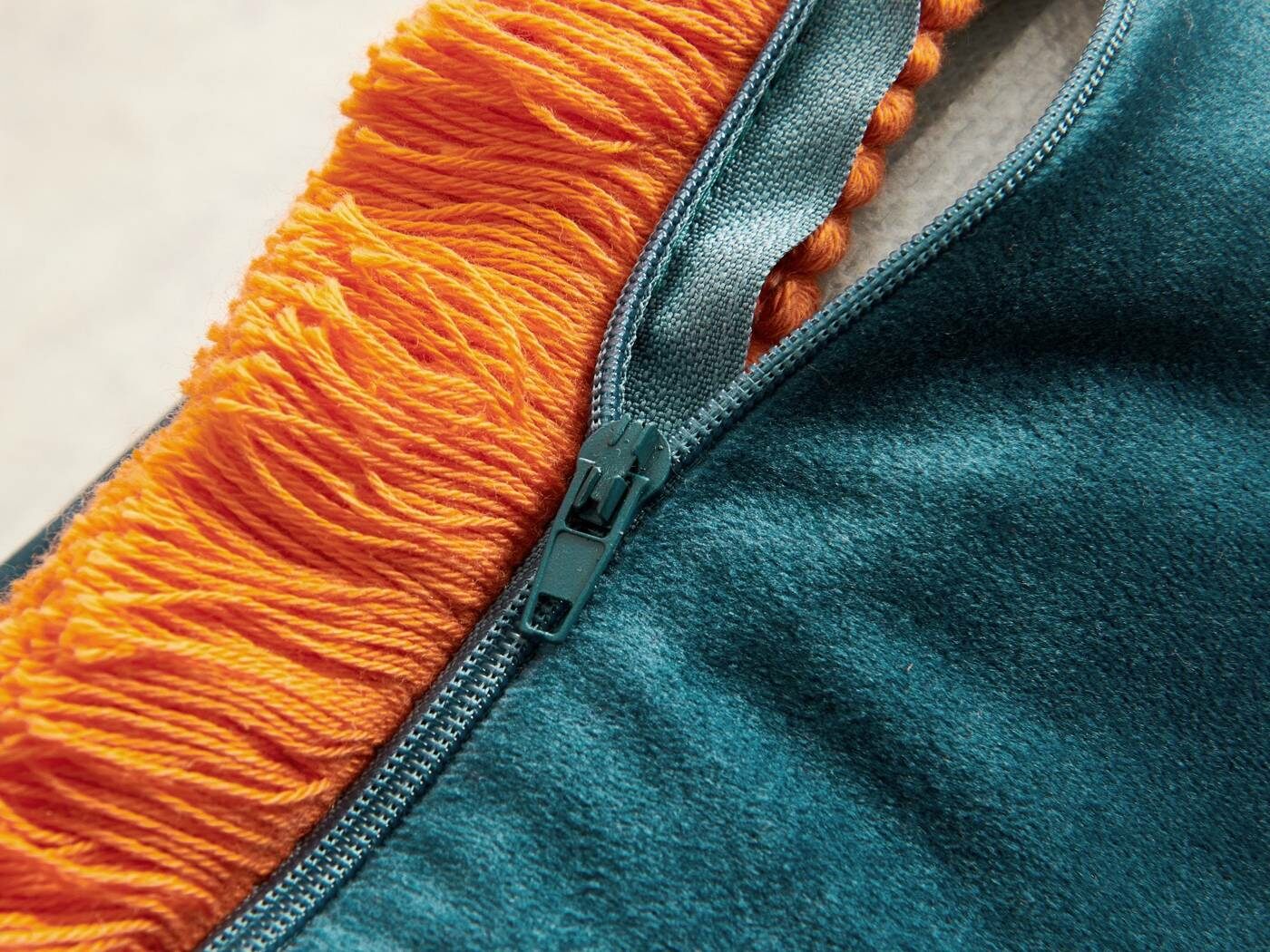 Особенность : с бахромой, потайная молния под цвет вшита в край наволочки.