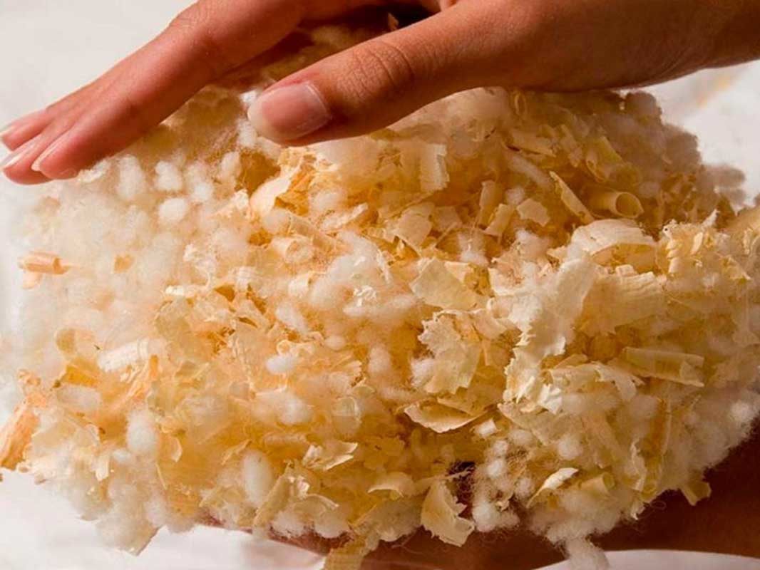 В составе наполнителя - гранулы овечьей шерсти (100%) и стружка альпийского кедра. Шарики из овечьей шерсти в сочетании с кедровыми хлопьями обеспечивают комфортный и здоровый сон. Съемный стеганый чехол сшит из 100% хлопка.