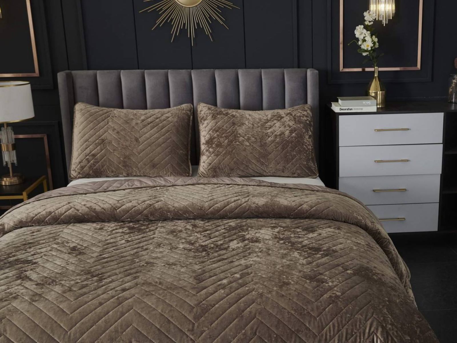 Покрывала Фернанд выглядят как будто сошли с картин, изображающих королевские покои. Бархатную ткань начали изготавливать еще в Средние века, её использовали в оформлении дворцов и изготавливали плащи и головные уборы для знати. Теперь и вы можете прикоснуться к этой роскоши! Бархатная текстура приятная на ощупь, а из-за особого плетения ткани, игра света на ней выглядит благородно. Поэтому покрывало Фернанд создаст необычайно уютную атмосферу в вашей спальне. Цветовая гамма разнообразна и включает восемь благородных оттенков: капучино, бежевый, изумруд, горчичный, терракотовый, пепельная роза, серый, стоун. За покрывалом Фернанд легко ухаживать: стирка при температуре 30 градусов, вручную или в машинке. Важно хорошо просушить изделие! При правильном уходе вещь прослужит долгие годы не потеряв форму и цвет.