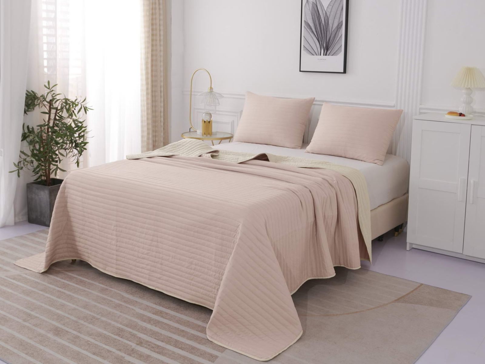 Двусторонние стеганные покрывала Самуэль выполнены из вискозы и хлопка, они легкие и прочные. В комплект входят покрывало и одна либо две наволочки (50х70 см) из аналогичного материала в зависимости от размера, вы можете использовать покрывало по назначению, либо в качестве постельного белья. В любом случае, вы будете в восторге от этого комплекта!