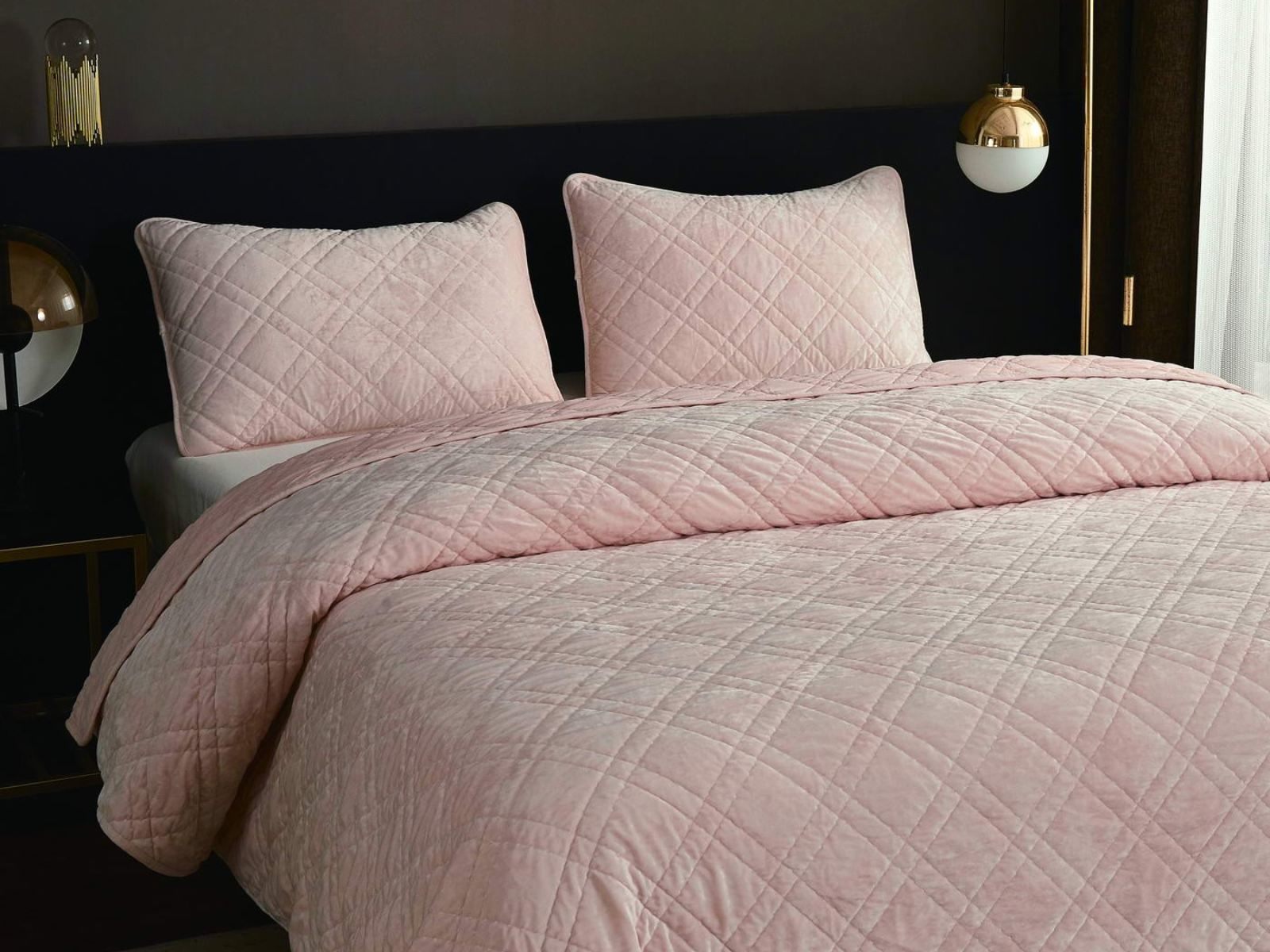 Покрывало Селена выполнено в девяти оттенках: пудра, антрацит, беж, изумруд, капучино, пепел роза, серебро, стоун, терракот. Они подойдут практически для любого интерьера, от классического, до модерна или романтического. Стеганое бархатное покрывало будет необыкновенно смотреться на вашей постели. В комплект входят покрывало и одна либо две наволочки (50х70 см) из аналогичного материала в зависимости от размера.