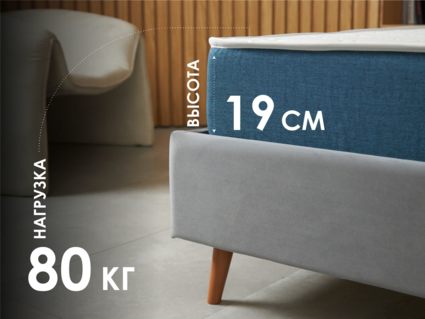 Основой изделия выступает пружинный блок «Боннель», который состоит из зависимых пружин. Зависимыми их делает специальный вид крепления, который как бы связывает все элементы в единое целое. В результате получается одна большая структура, которая единовременно отвечает на нагрузки и поступающий вес. Блок выдерживает до 80 кг на спальное место.