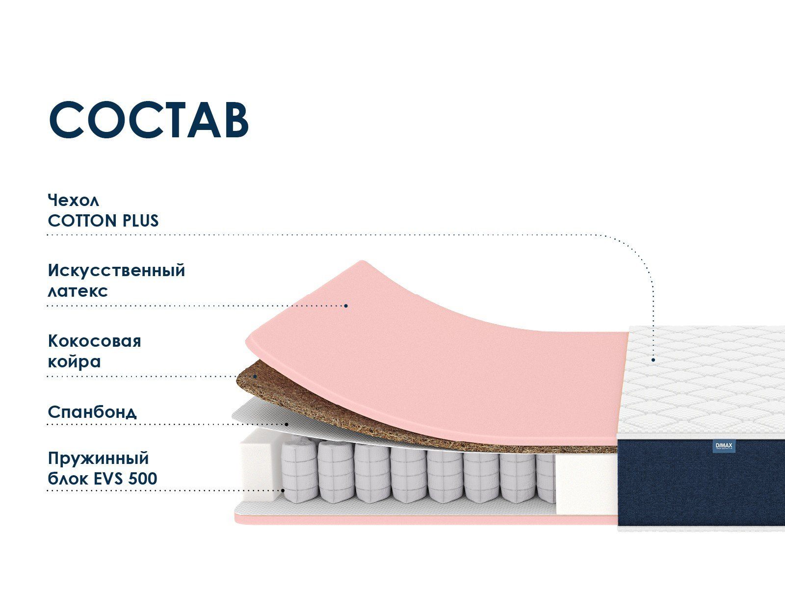 Димакс Практик Лайт Базис 500 — ортопедический пружинный матрас с двумя уровнями жёсткости: средним и ниже среднего. Модель идеально подойдёт тем, кто ищет комфортное и доступное решение для качественного сна.