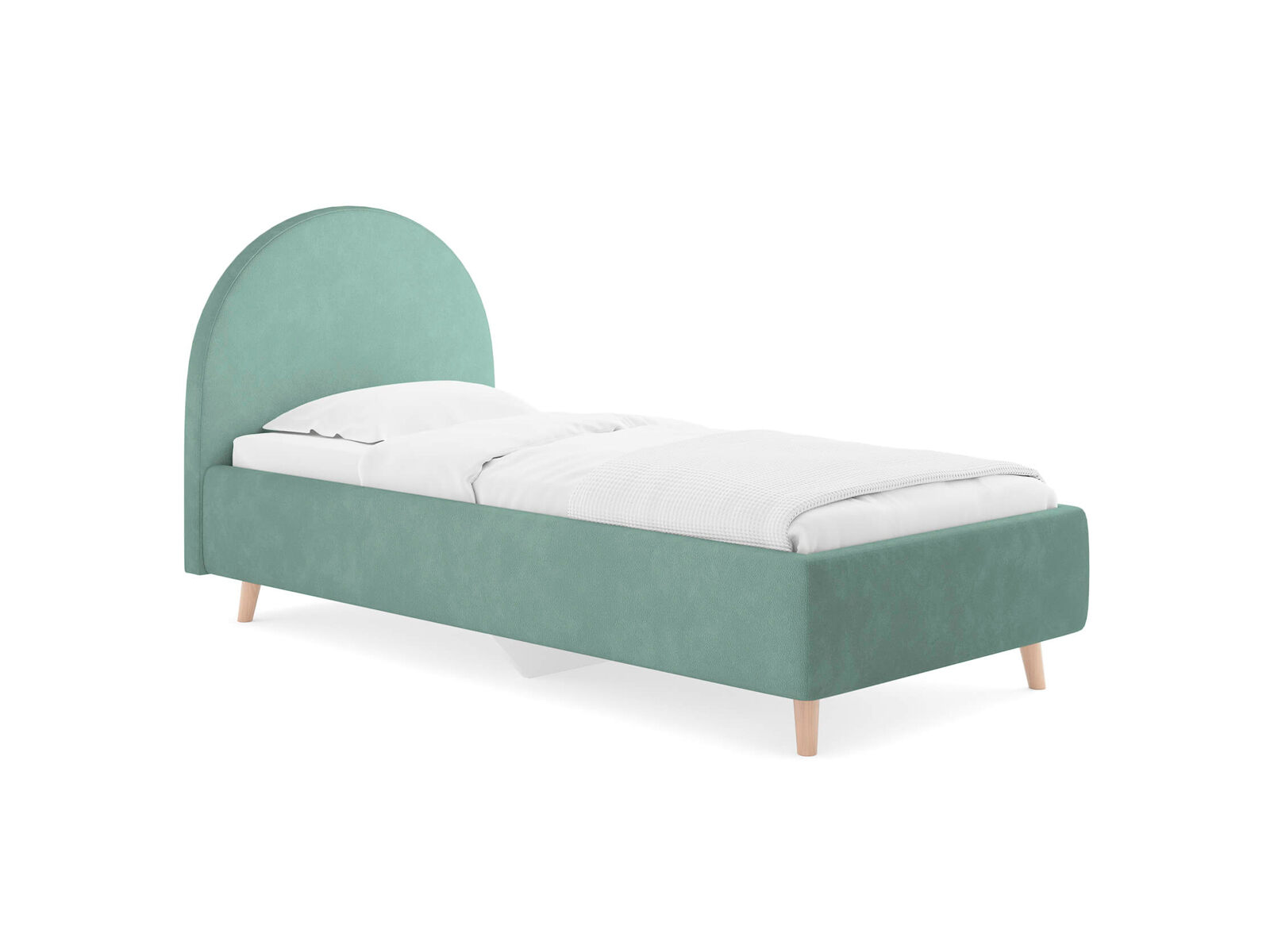 Подростковая кровать с закругленным изголовьем — это идеальное решение для создания уютного и стильного пространства в комнате. Элегантные линии изголовья не только придают изделию изысканный вид, но и добавят мягкость в интерьер, создавая уютную обстановку. По умолчанию задняя спинка кровати обивается тканью, что позволит расположить кровать не только к стене. Основание кровати на высоких деревянных ножках. Благодаря увеличенной высоте позволяют осуществлять легкую уборку под кроватью, даже с помощью робота-пылесоса. При необходимости кровать может быть укомплектована трансформируемым основанием Aquarius.